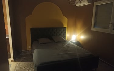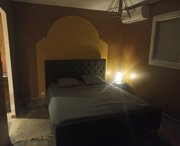 Ambiance orientale douce et enveloppante, accompagnée d’une salle de bain privative.